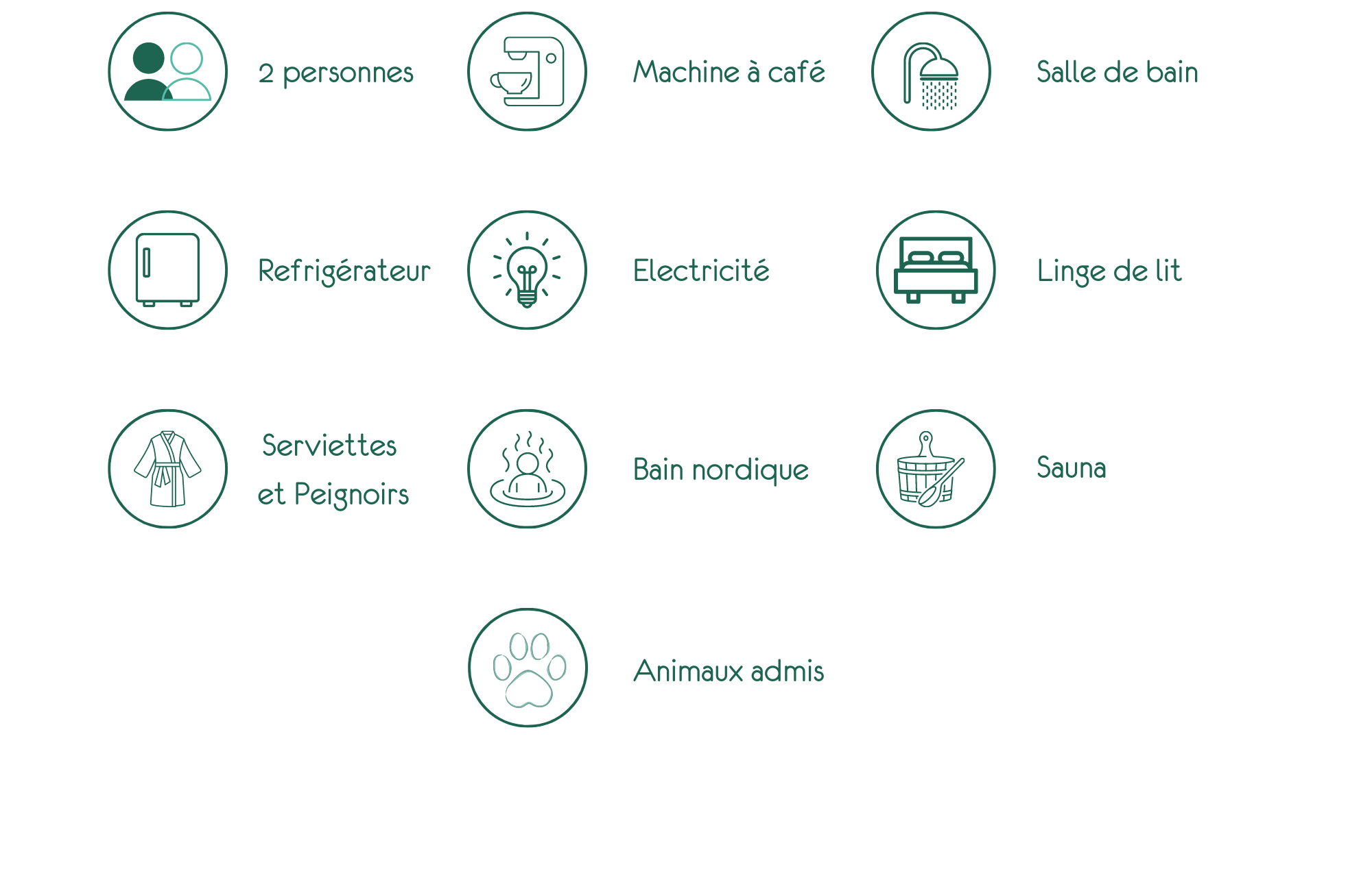 Votre terrasse ensoleillée vous accueillera pour un moment de détente et lâché prise. Continuez votre visite en entrant dans votre cabane équipée d’une kitchenette et d’une salle de bain. Vous pourrez alors admirer la vue et le bain nordique chauffé au bois qui vous attend pour votre plus grand plaisir. Octroyez-vous une pause au cœur de votre sauna entièrement privatisé pour votre séjour.